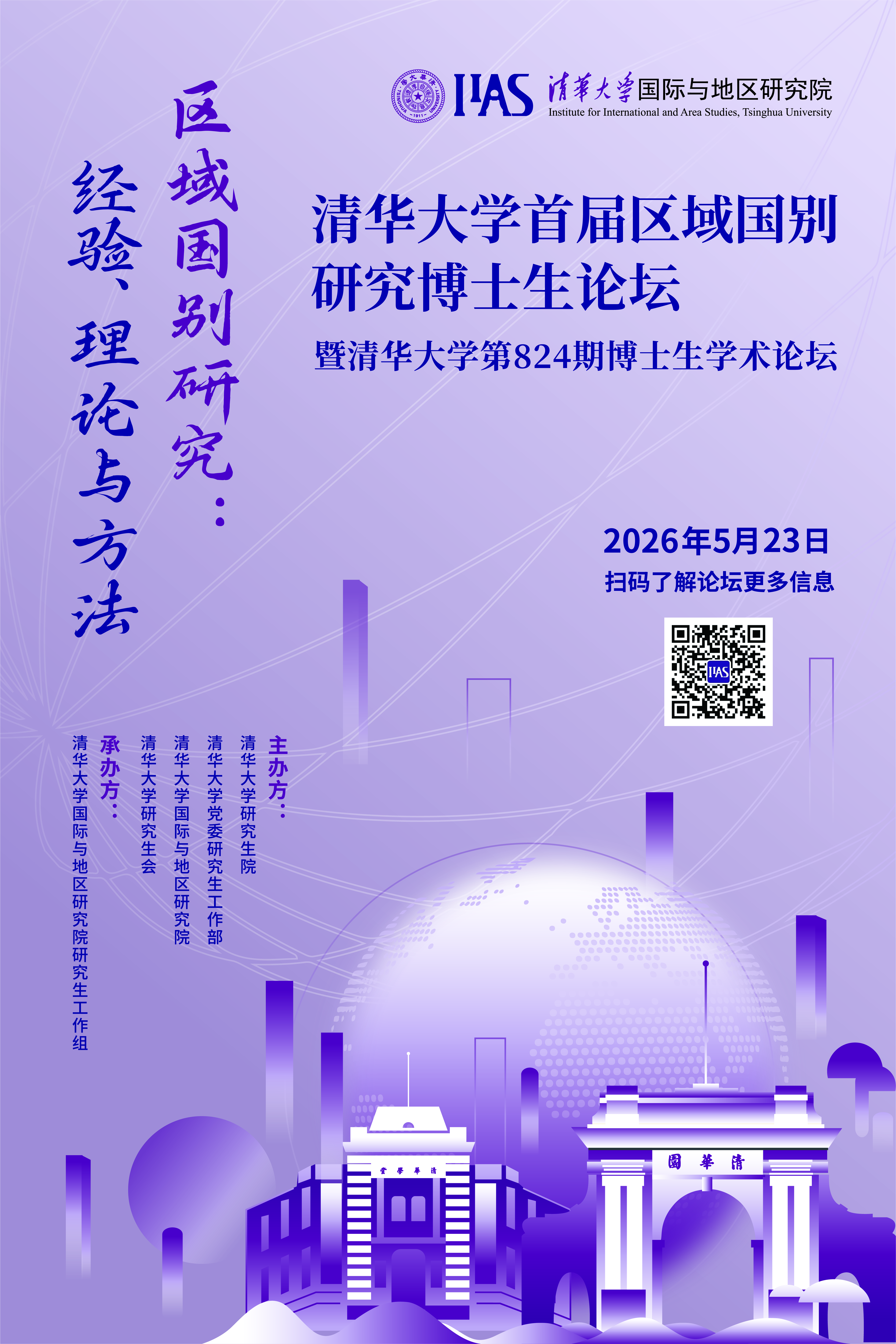 (简称“地区研究院”)将在这一框架下举办首届区域国别研究博士生论坛(清华大学第824期博士生论坛)。本届论坛旨在立足中国、面向世界,推动博士生和青年学者围绕区域国别研究开展深入交流。