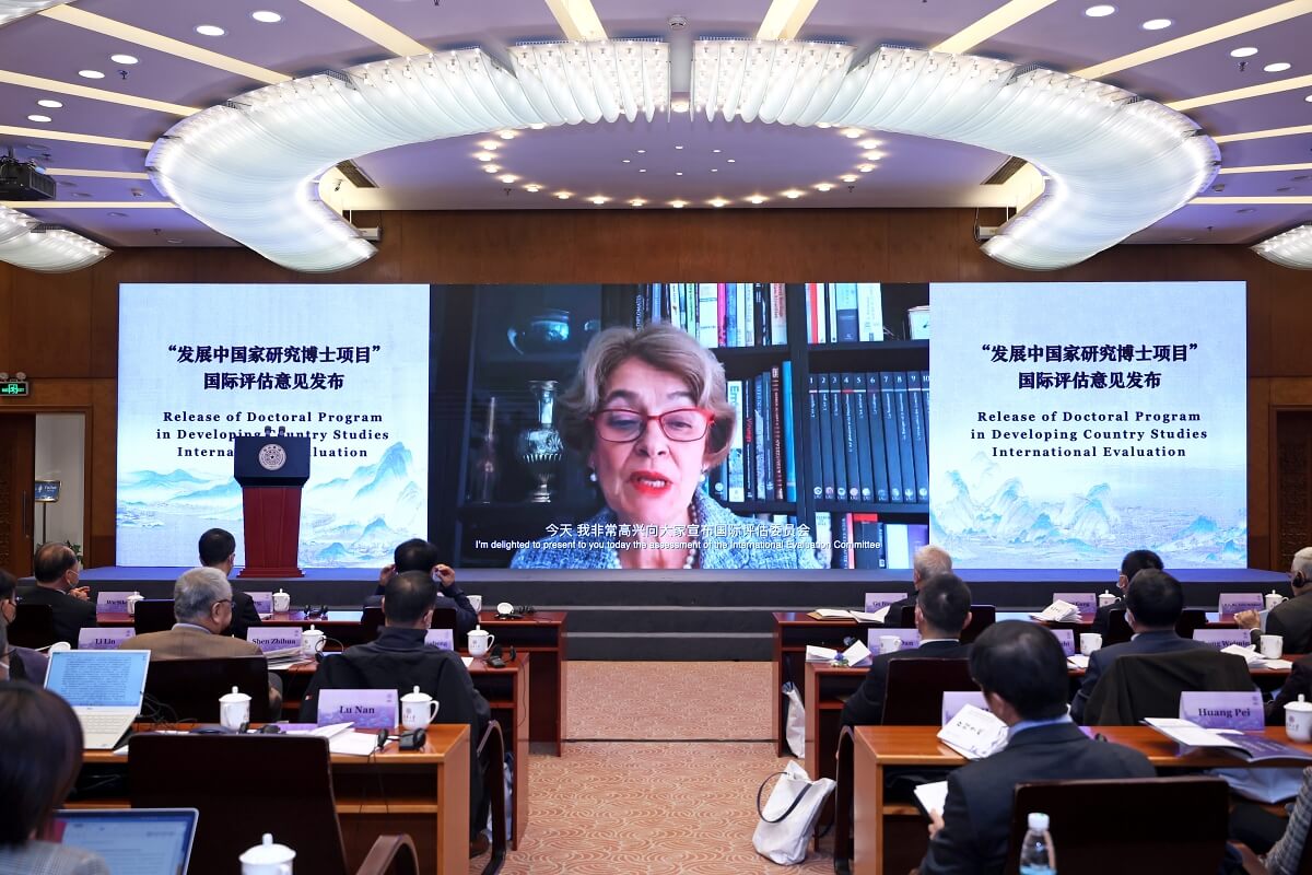 会上发布了发展中国家研究博士项目国际评估意见。经过十年的探索和实践,项目初步形成了区域与国别研究人才培养的“清华模式”。为对项目进行一次“自我诊断”,客观评价得失,发现问题方向,地区研究院理事会邀请由联合国教科文组织前总干事伊琳娜·博科娃女士担任主席,11位区域国别研究领域国际资深学者担任委员的国际评估委员会,对项目进行了一次全面的国际评估。会上,博科娃女士以视频方式宣读了评估委员会的评估意见。国际评估委员会认为,清华大学发展中国家研究博士项目的质量至少能够比肩世界顶尖高校的同类项目,且在一定程度上拥有其他项目所不具备的训练深度与广度。评估委员会也肯定了项目的若干特点,如重视学生对对象国语言或多门语言的熟练掌握;明确规定学生需在对象国进行长期、深入的田野调研;要求学生赴世界顶尖大学交流学习;课程体系融合了学科专业与地区研究知识;为学生提供了充足的资金支持;提供了高质量的学科和地区研究课程等。