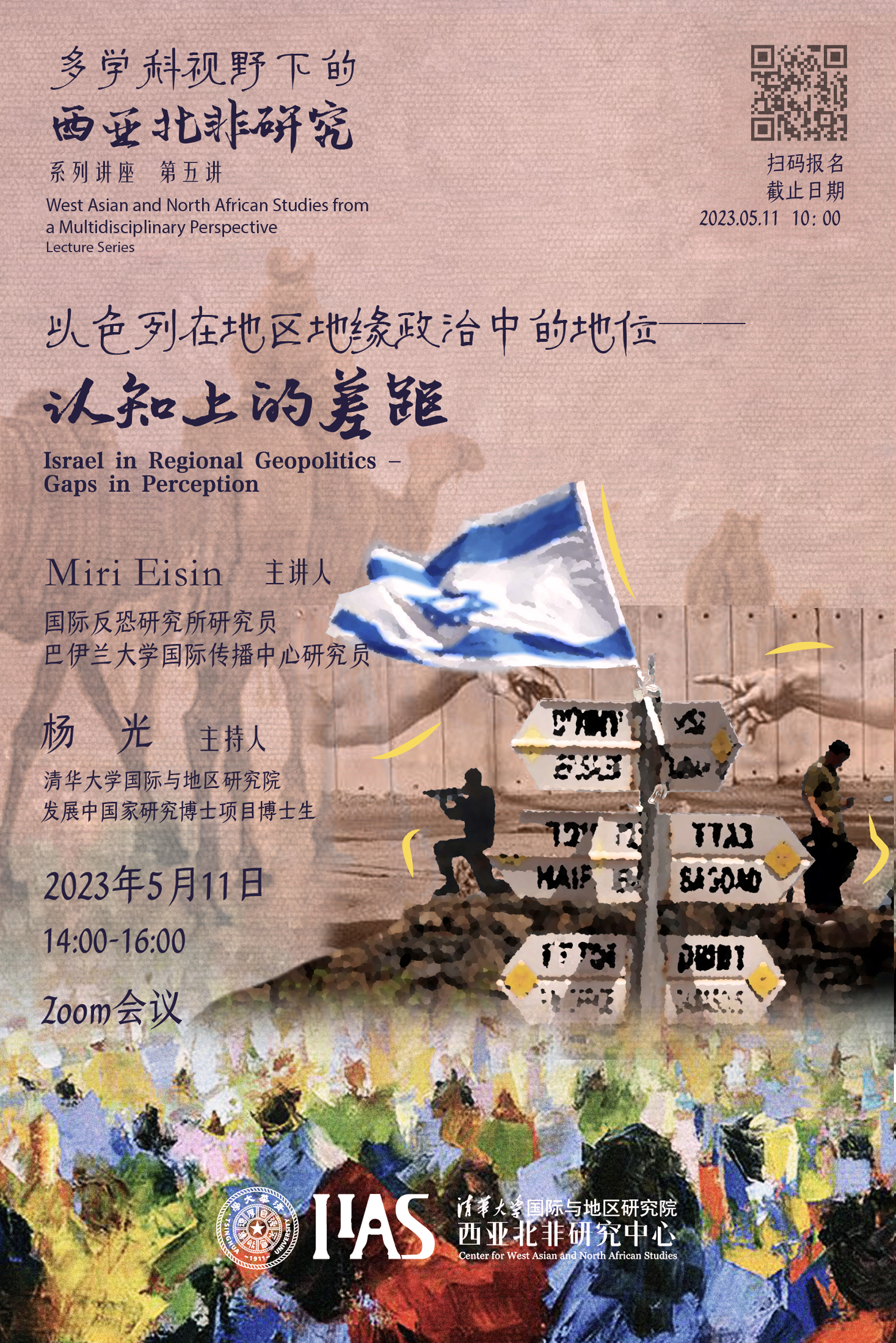 西亚北非研究中心2022-2023学年春季学期“多学科视野下的西亚北非研究”系列讲座第五讲于线上开讲,主题为“以色列在地区地缘政治中的地位——认知上的差距”。本次讲座由国际反恐研究所研究员、巴伊兰大学国际传播中心研究员Miri Eisin上校(退役)主讲。百家乐